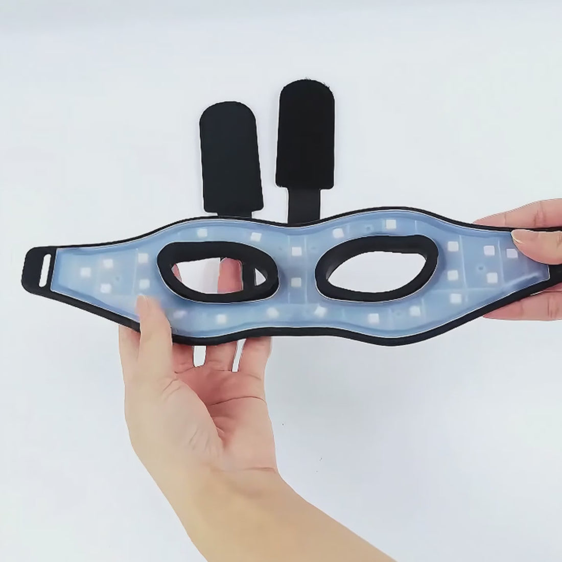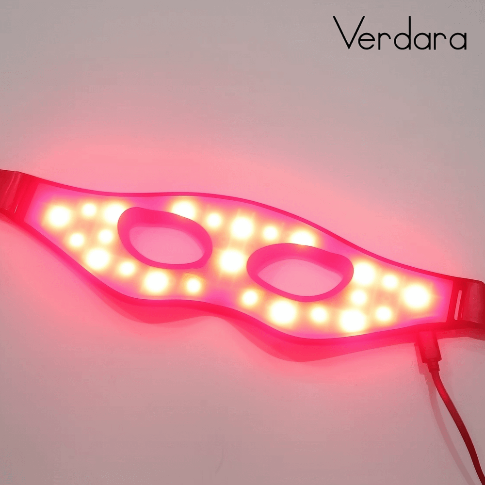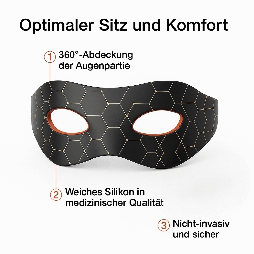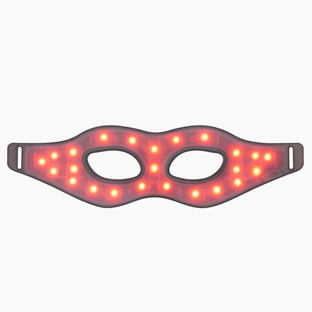 Eine Augenmaske mit eingebauten roten LED-Lichtern. Sie hilft dabei, die Augenpartie zu pflegen und die Haut um die Augen zu verjüngen.