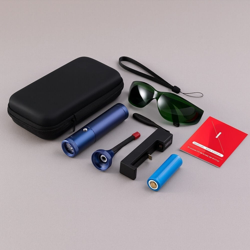 Gerät einschalten: Setzen Sie die Lichtschutzbrille auf. Schalten Sie das Gerät ein, indem Sie einmal auf den Knopf drücken. Richten Sie den Lichtstrahl auf die zu behandelnde Fläche in einem Abstand von 1 cm bis 3 cm für 90 bis 180 Sekunden.